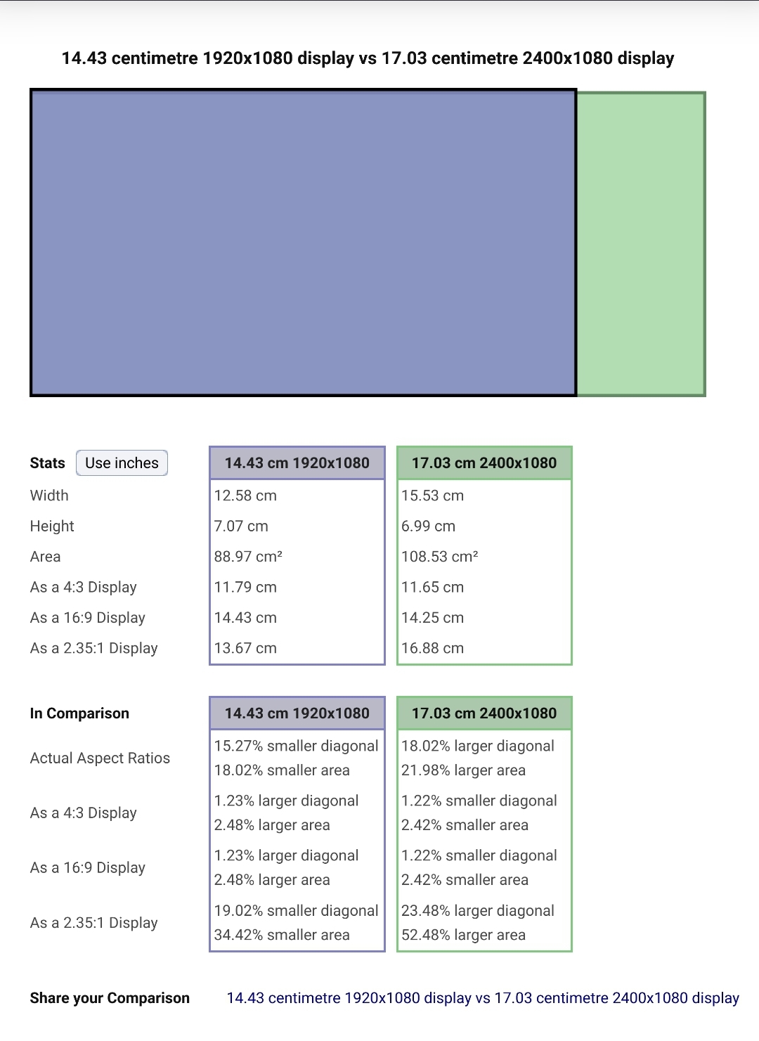 스마트폰 화면크기: 16:9비율 5.7인치 vs 20:9비율 6.7인치 본문