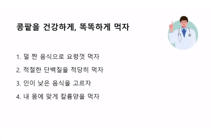소금을 적게 먹을 것. 꼭 저염식하기...