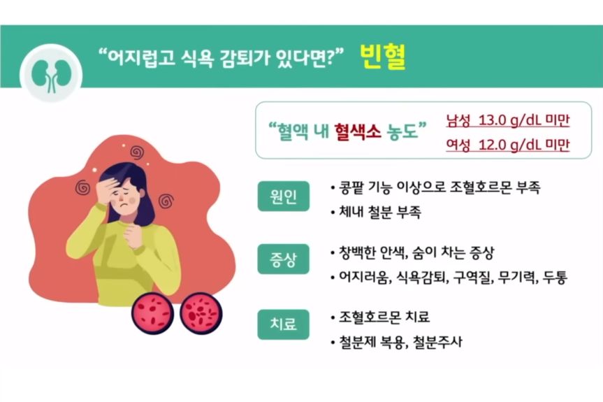 만성콩팥병이 되면 콩팥만이 아니라 온몸에 합병증이 한꺼번에 생겨서 심해진다.