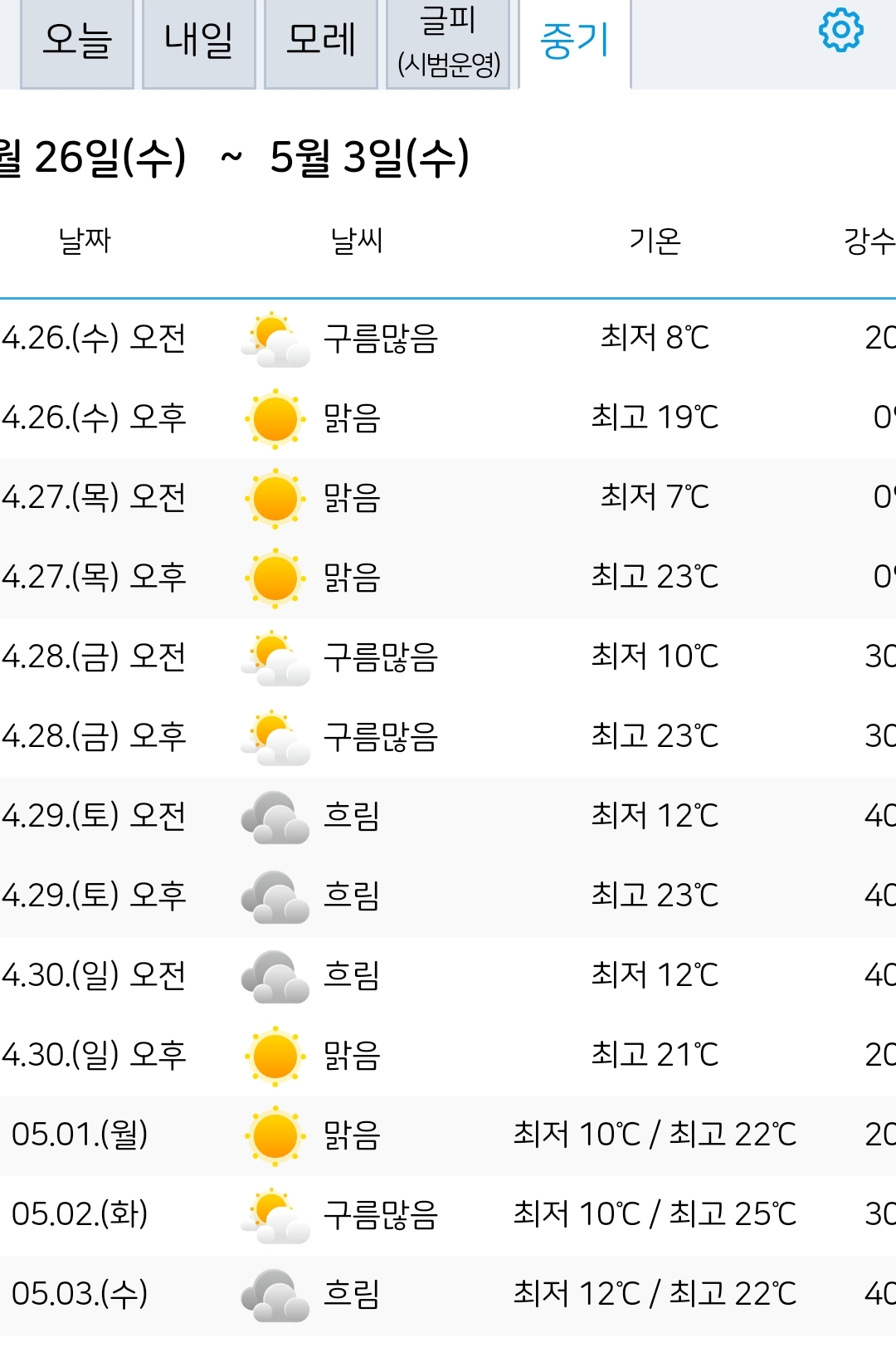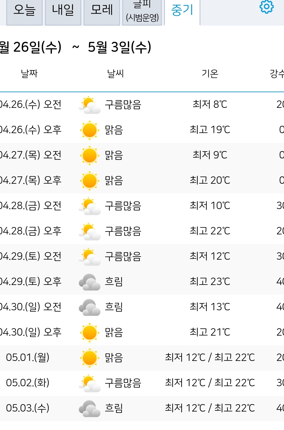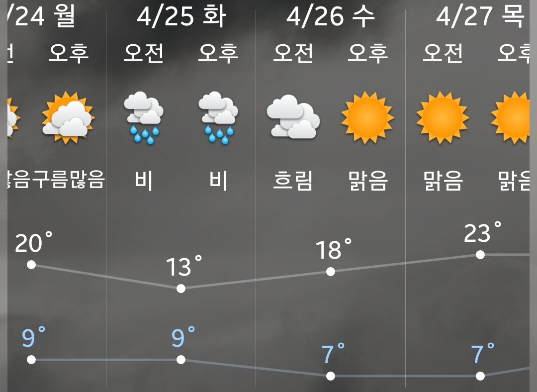 2023.4.24.월.~5.3.수. 서울·대전 일기예보 본문