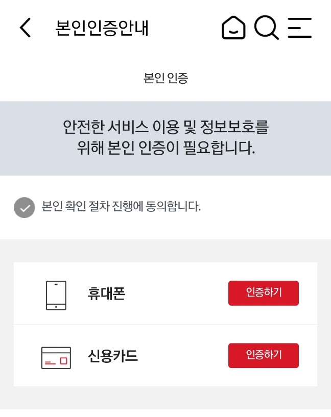 본인인증은 신옹카드인증이나 휴대폰인증.