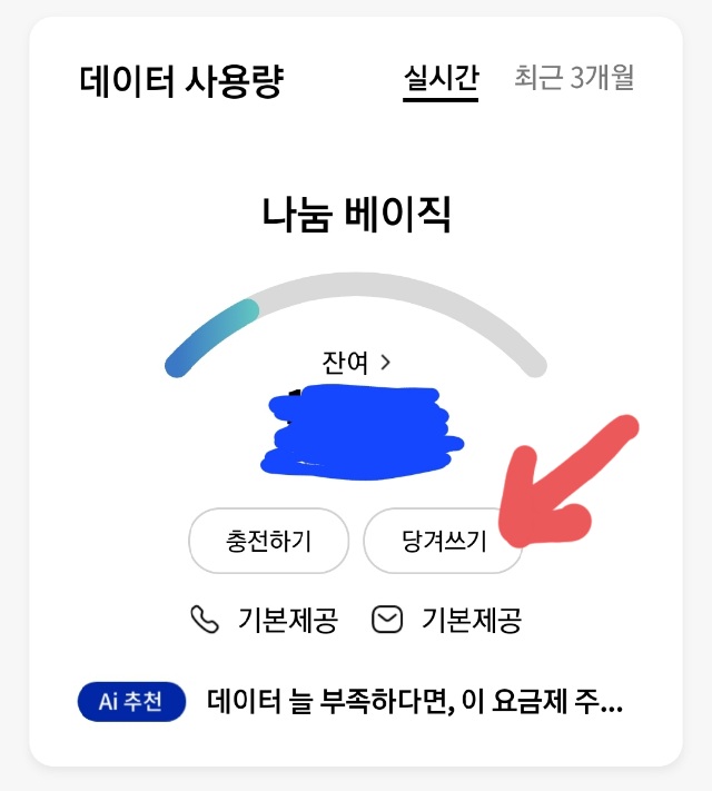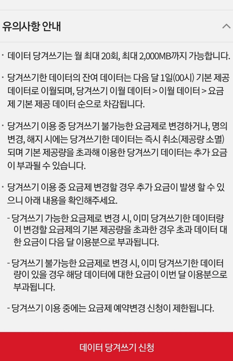 ㅡ 당겨쓰기한 데이터는 다음달(원레제공달) 말일까지가 유효기간.