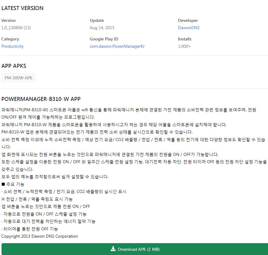 DowonDNS 파워매니저 PM-B310-W (소비전력측정기) 관련 앱 본문