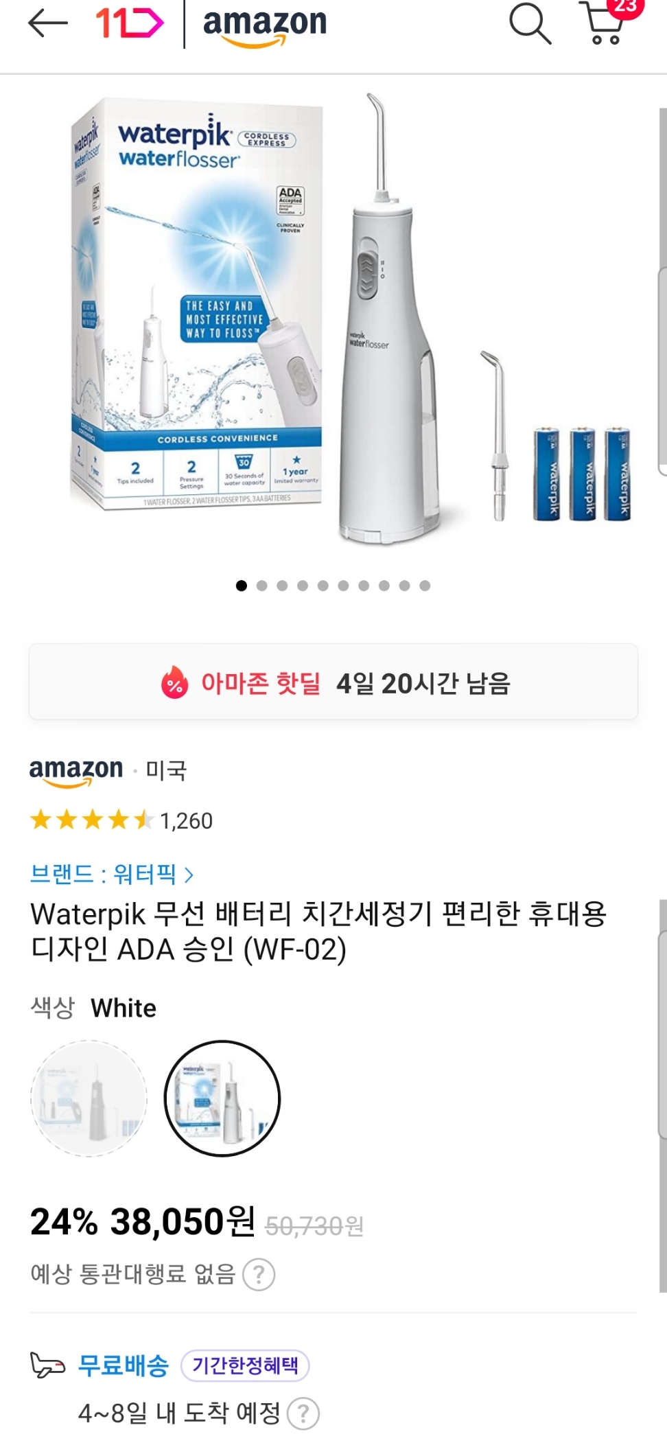 (11번가-아마존) 워터픽(Waterpik) 무선 치간세정기 (WF-02) (~3.8만원/일반) 본문