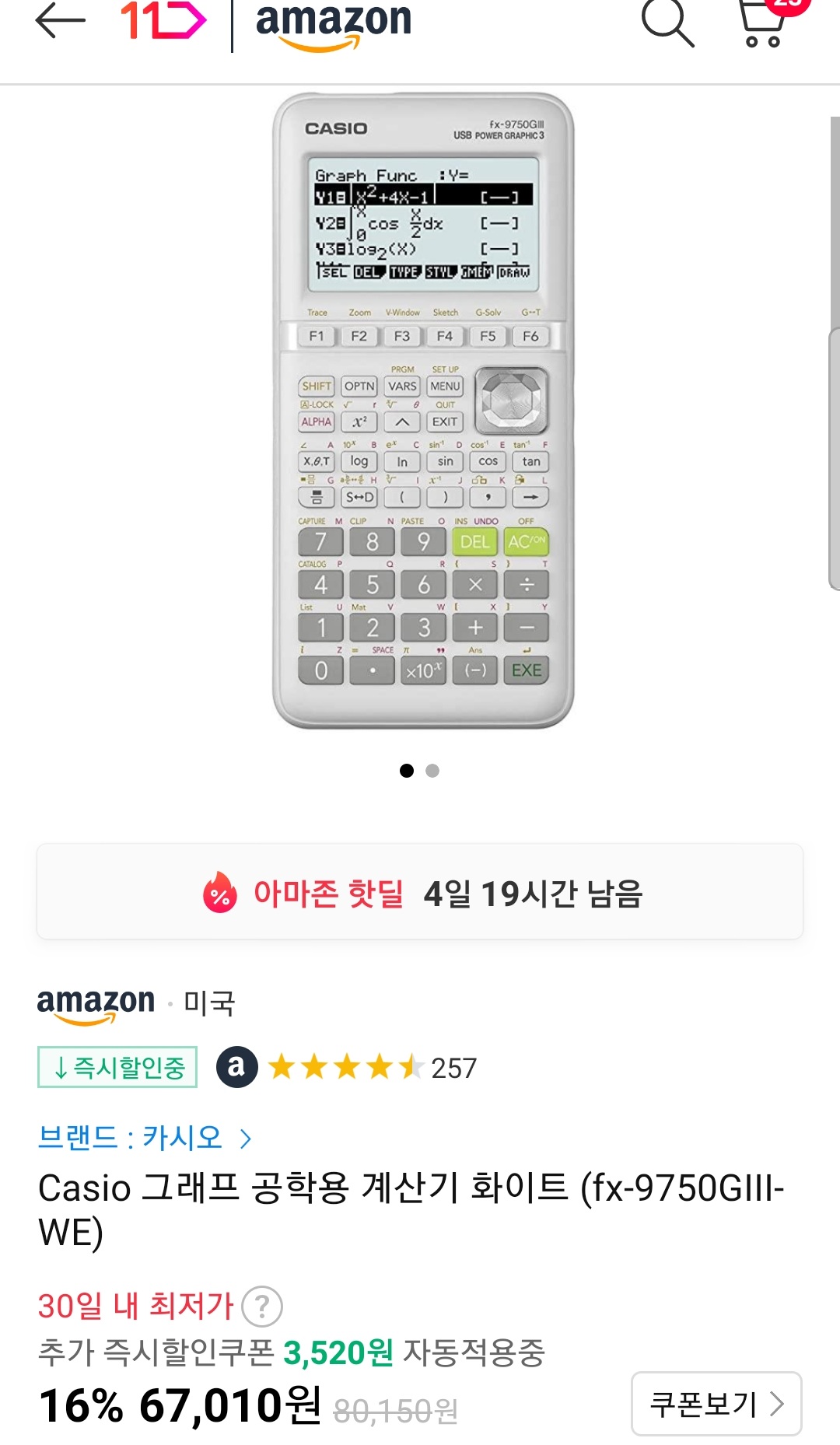 (11번가-아마존) Casio 공학용 계산기 fx-9750GIII(블랙), fx-9750GIII-WE(화이트) (~6.7만, ~6.8만) 본문