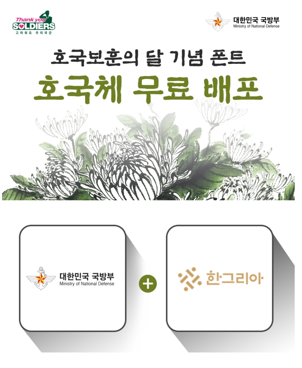 국방부는 6월 호국 보훈의 달을 맞아 한글 폰트인 '호국체'를 누구나 무료로 쓸 수 있도록 공개...