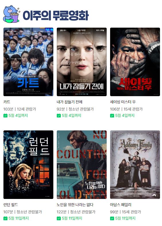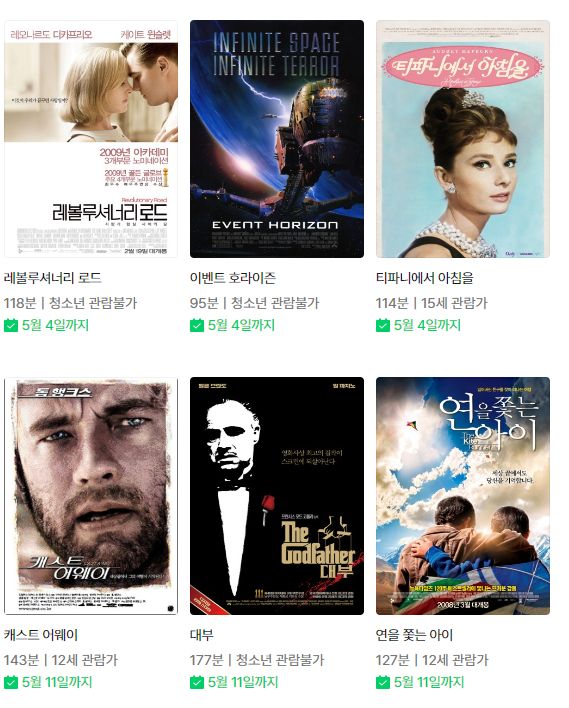 (네이버시리즈온 무료영화) 런던 필드, 티파니에서 아침을, 아담스 패밀리, 캐스트 어웨이, 대부 등 본문