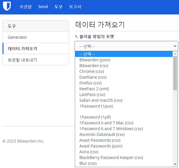다른 소프트웨어나 서비스에서 데이터를 내보내기(export)하거나 복사(copy)해서 비트워든에 가져오기(import)