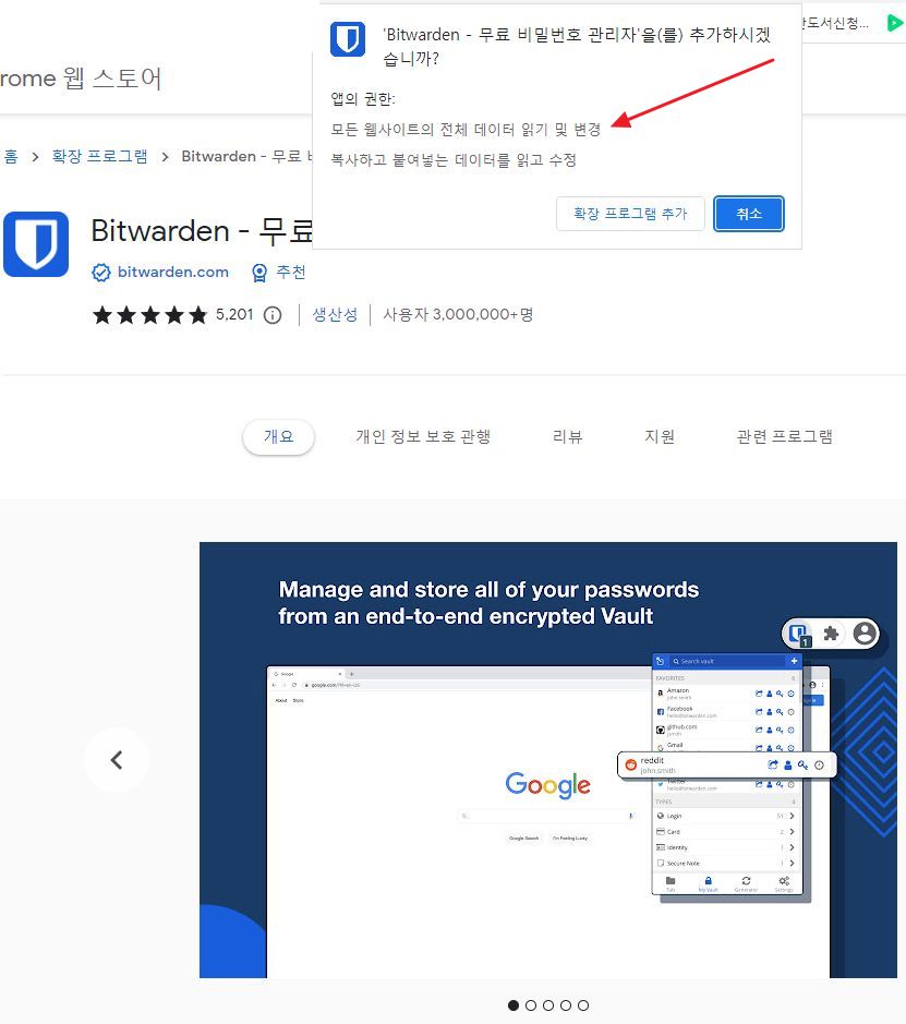 비트워든 플러그인(애드온, 익스텐션)을 설치한 다음,