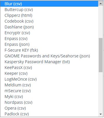 LastPass, 1Pasword, Dashlane, Google Chrome, macOS와 Safari, Mozilla Firefox, Passoword Safe, Myki 에서 가져올 수 있다고.