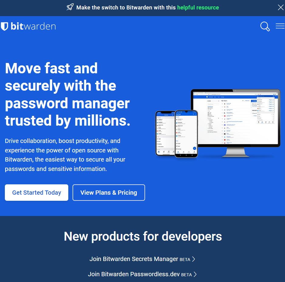 Bitwarden is an integrated open source password management solution for individuals, teams, and business organizations