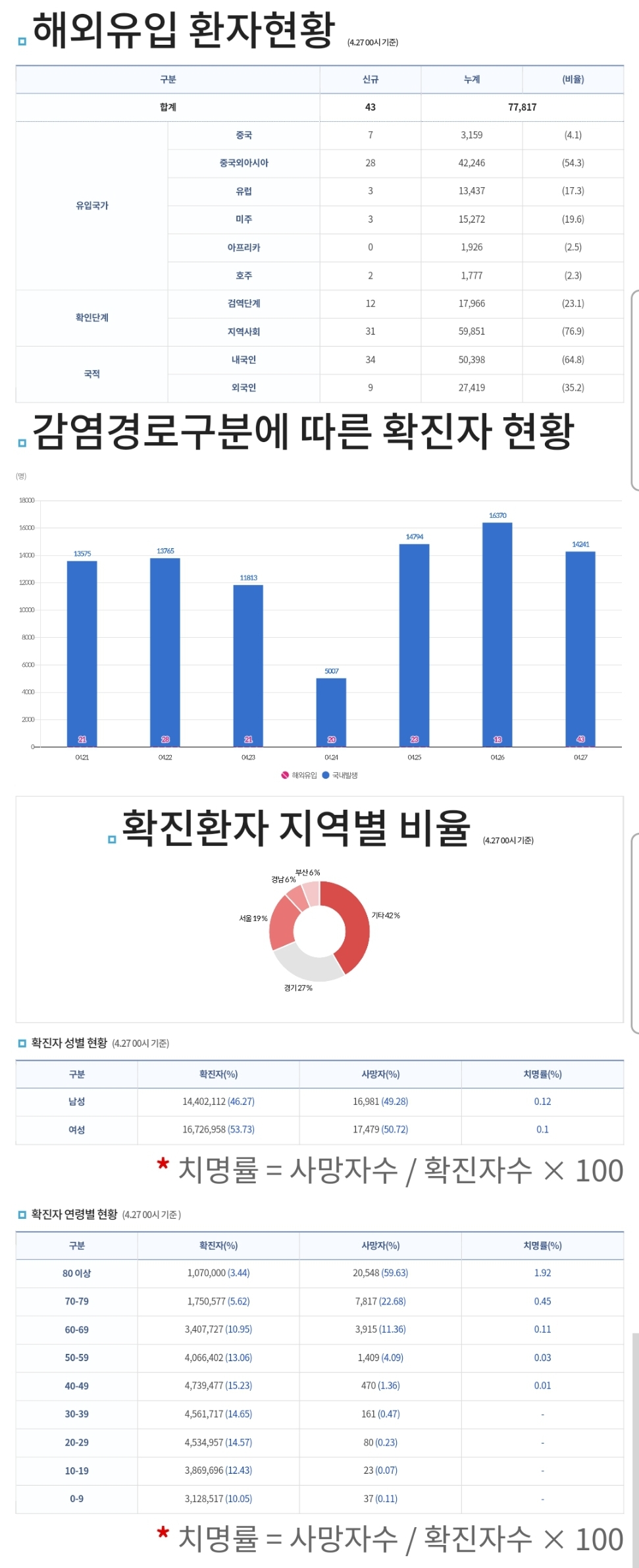 | 코로나19집계(2023.4.26. 0시기준) 확진 +1.6만, 사망 +15명, 중환자병상가동률 36% (0) | 2023.04.26 |