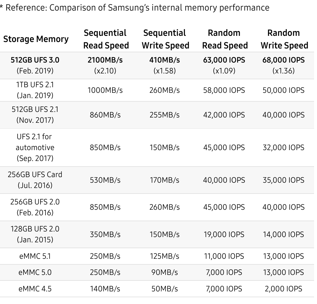 UFS 3.0이 2.1보다 2배 이상 빠르다고.