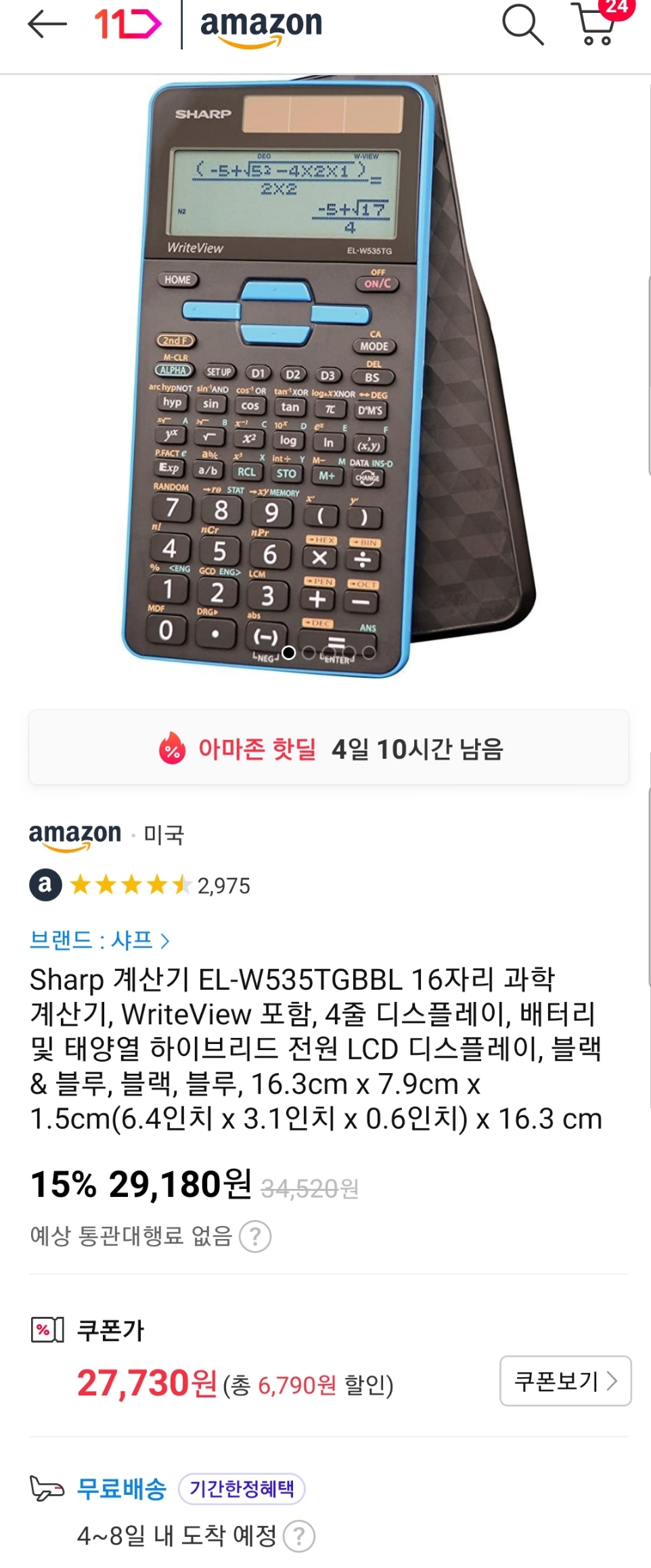 (11번가-아마존) Sharp 계산기 EL-W535TGBBL (~2.8만원) 본문