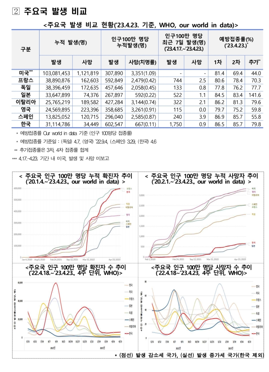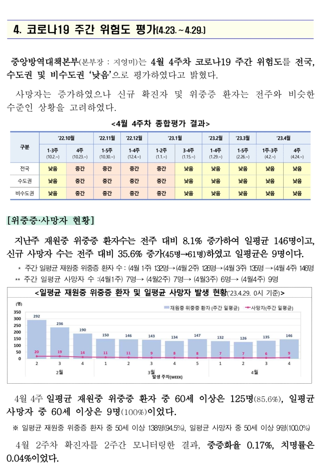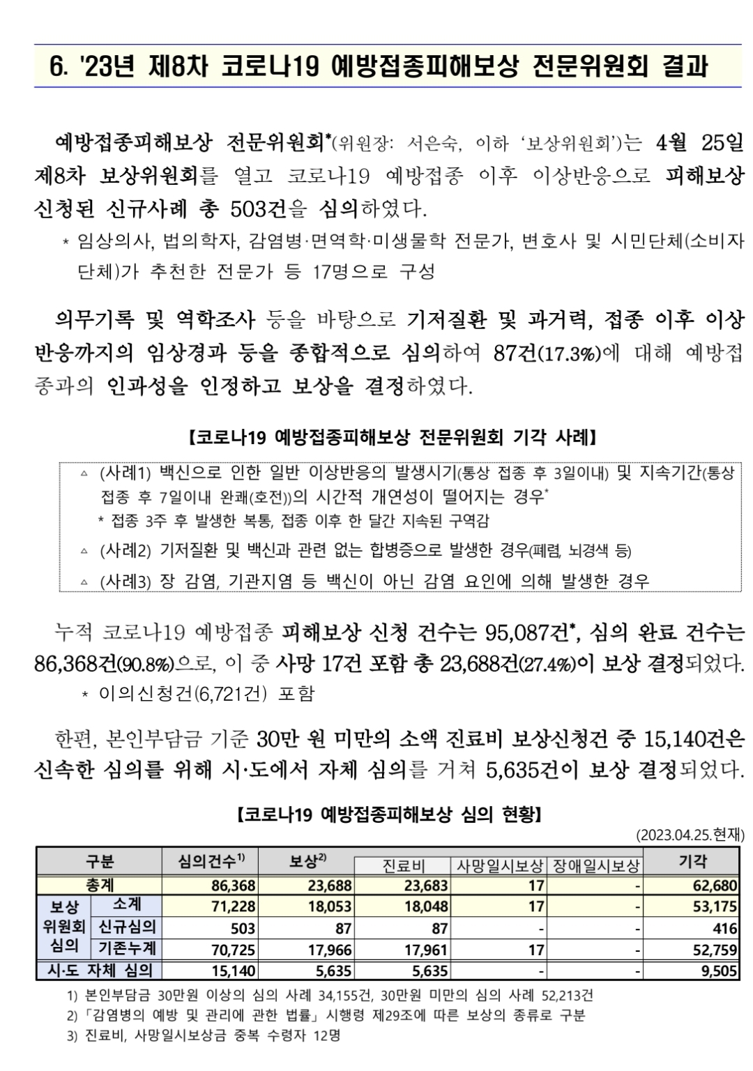 코로나19(2023.5.3) 주간 발생 동향(4.23~4.28), 2023년 제 8차 예방접종 피해보상 전문의원회 결과 본문
