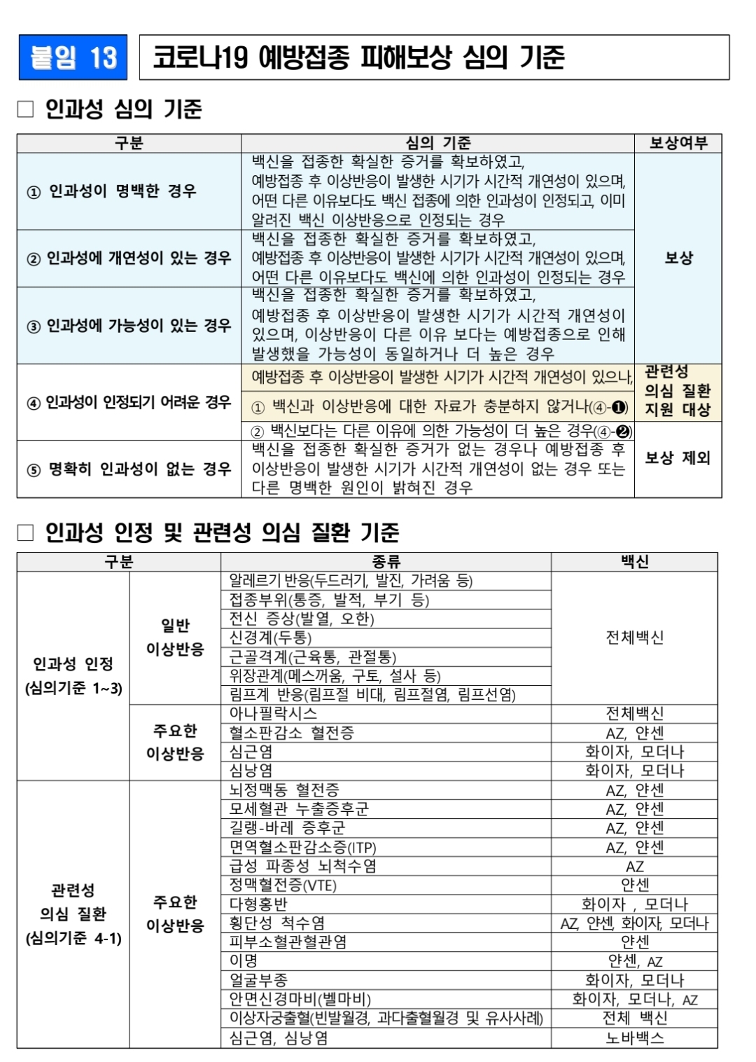 2023년 제 8차 코로나19 예방접종피해보상 전문위원회 결과, 코로나19 예방접종피해보상 심의기준