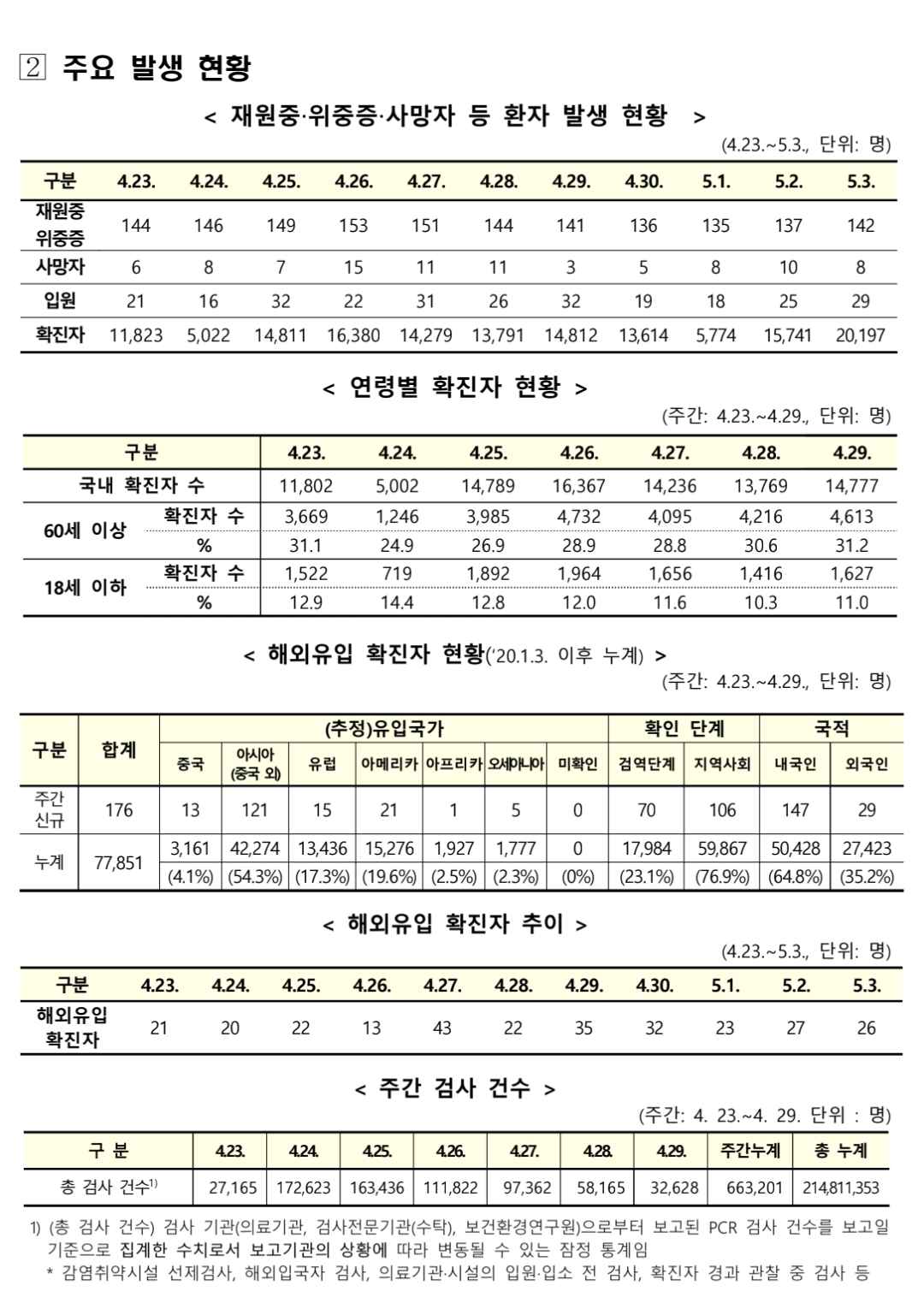 | 코로나19집계(2023.5.3. 0시기준) 확진 +2만, 사망 +8명, 중환자병상가동률 41% (0) | 2023.05.04 |