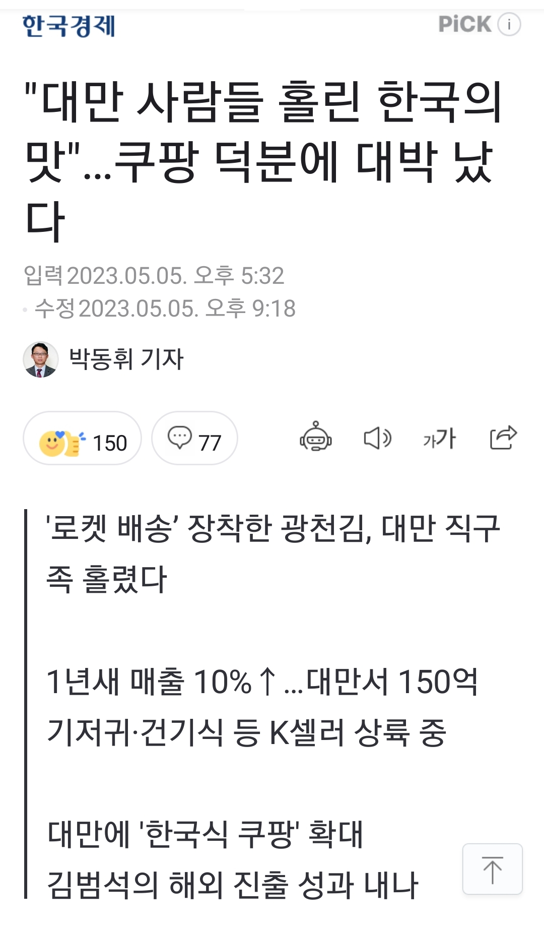 아래는 쿠팡의 대만사업을 소개한 기사입니다.