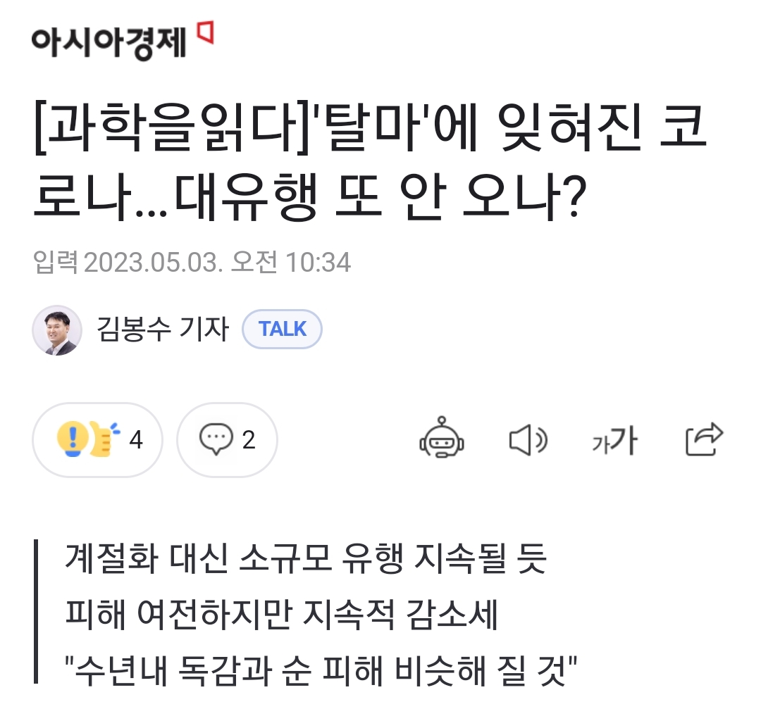 [과학을읽다]'탈마'에 잊혀진 코로나…대유행 또 안 오나?