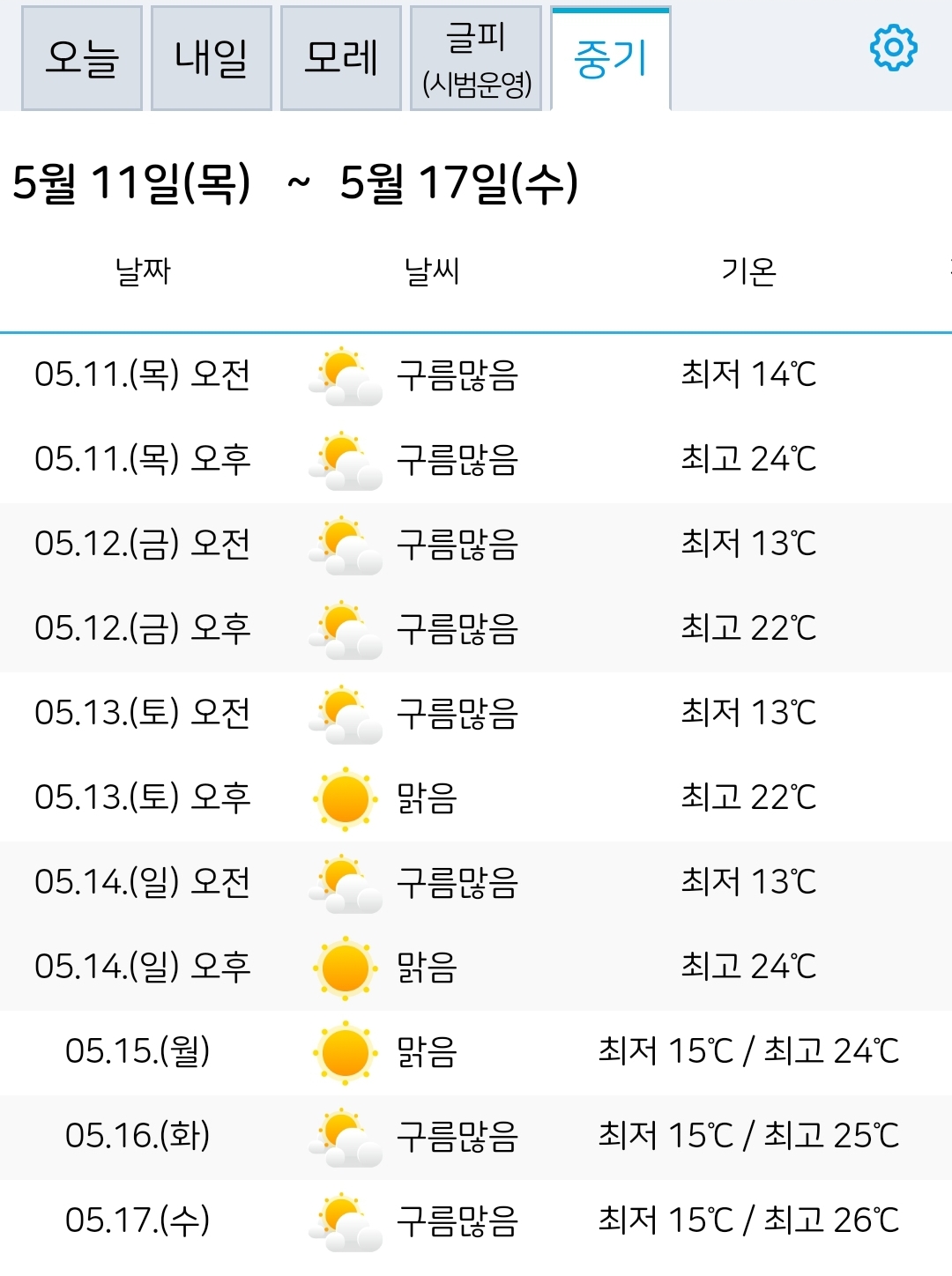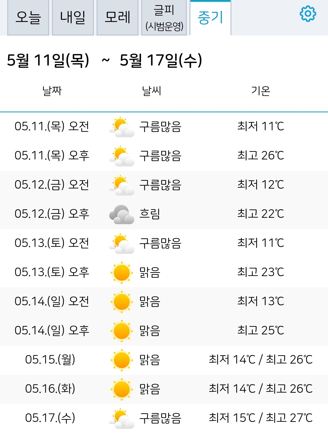 2023.5.8.월.~5.17.수. 서울·대전 날씨: 비 없음 본문