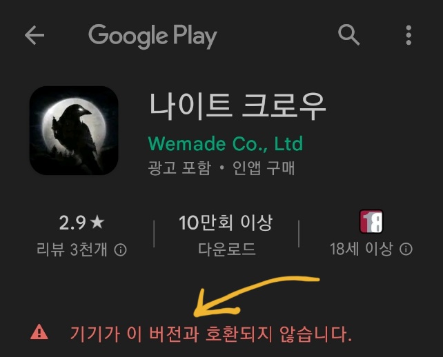 언드로이드11 스마트폰에서 호환되지 않는다는, 위메이○의 모 게임 본문