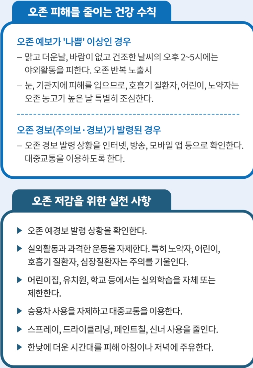 환경부, 오존 예보등급과 행동요령