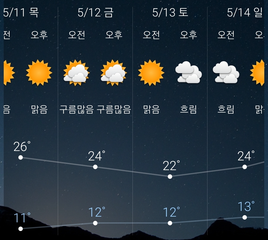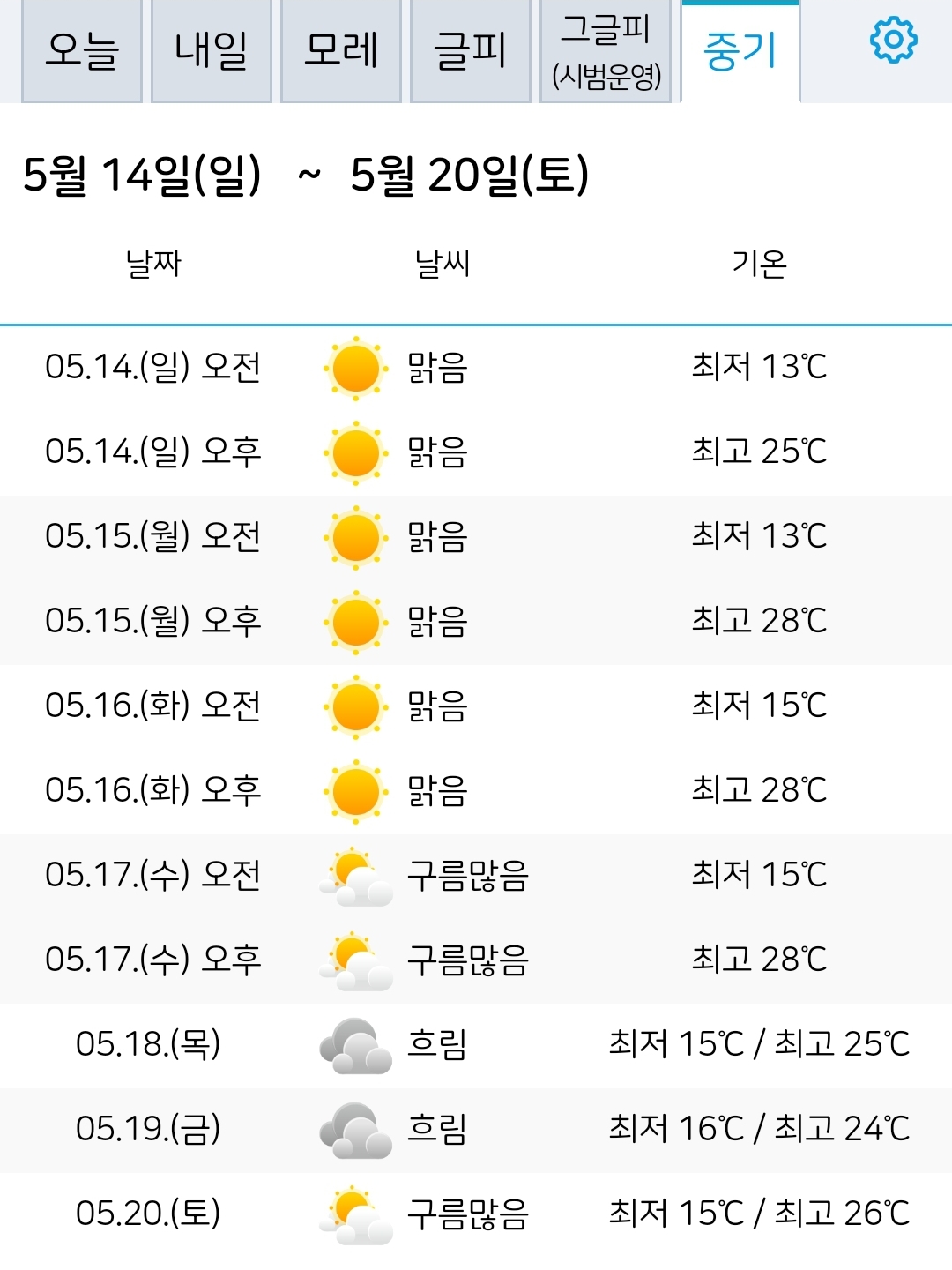 | 2023.5.15.월.~5.24.수. 서울·대전 일기예보: 맑음 (0) | 2023.05.14 |