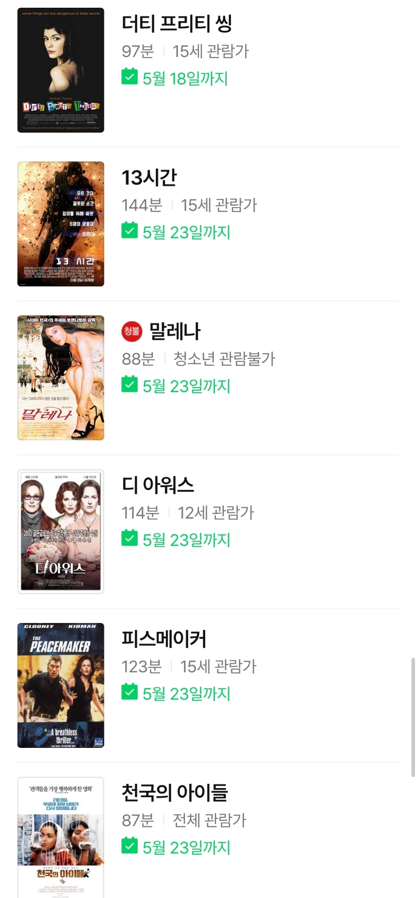 (네이버시리즈온 무료영화) 13시간, 말레나, 디 아워스, 피스메이커, 천국의 아이들 등 본문