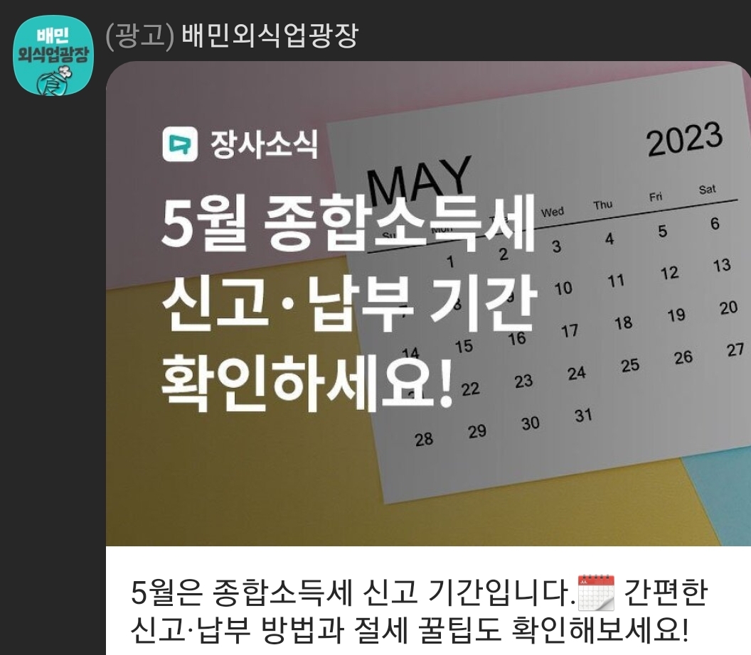 5월 종합소득세 신고(배민 외식업광장) 도움글 링크 모음 본문