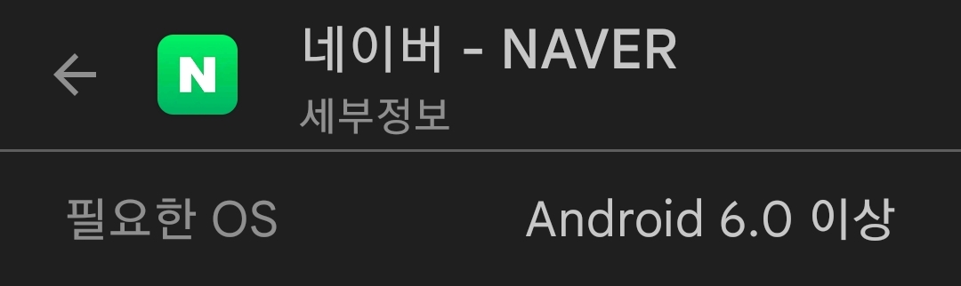 ㅡ 네이버앱은 6.0 이상. (5.대에서는 본인인증이 필요한 네이버서비스 불가. 아마)
