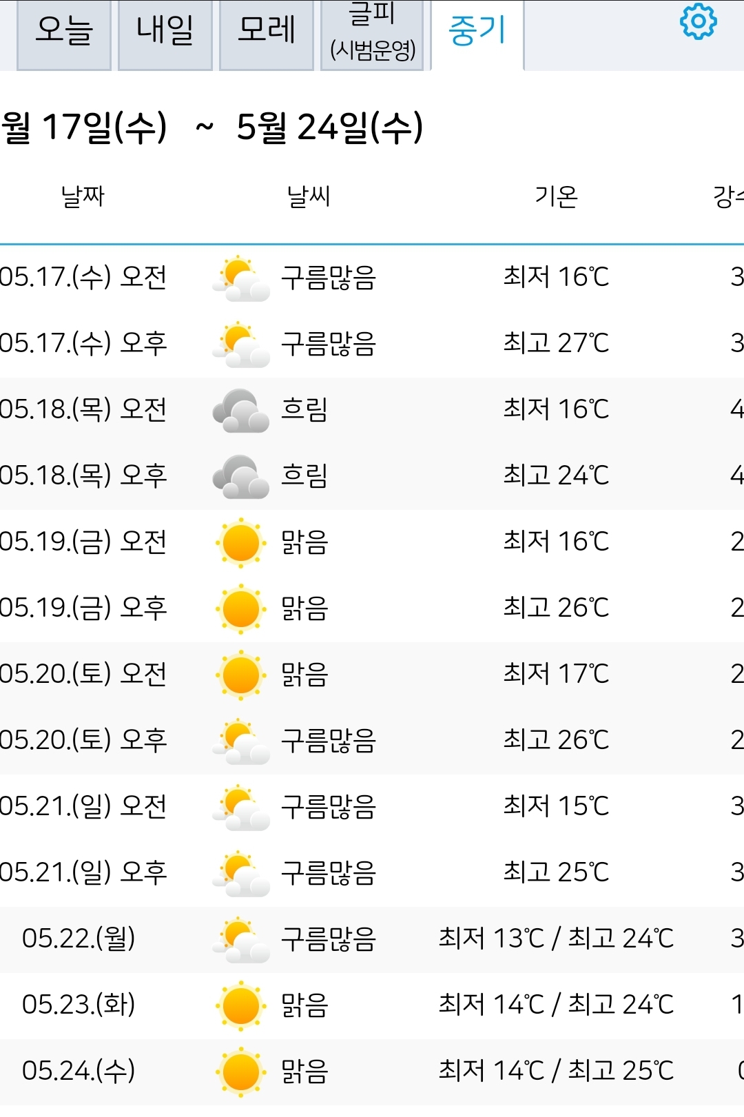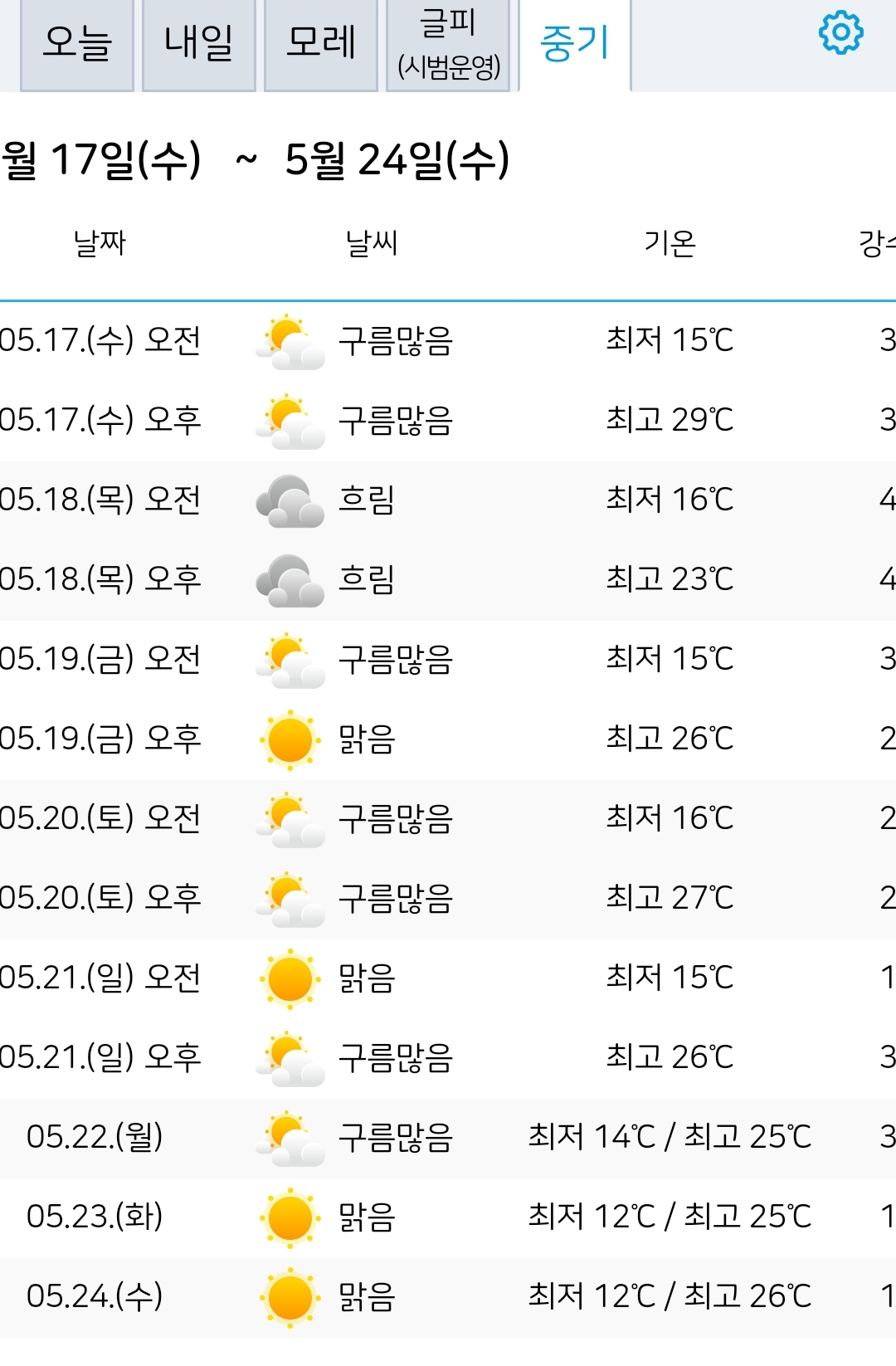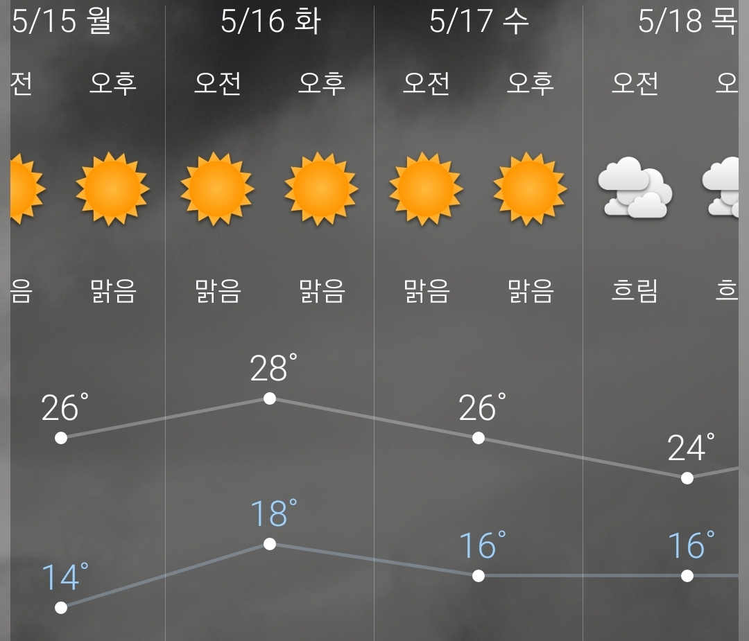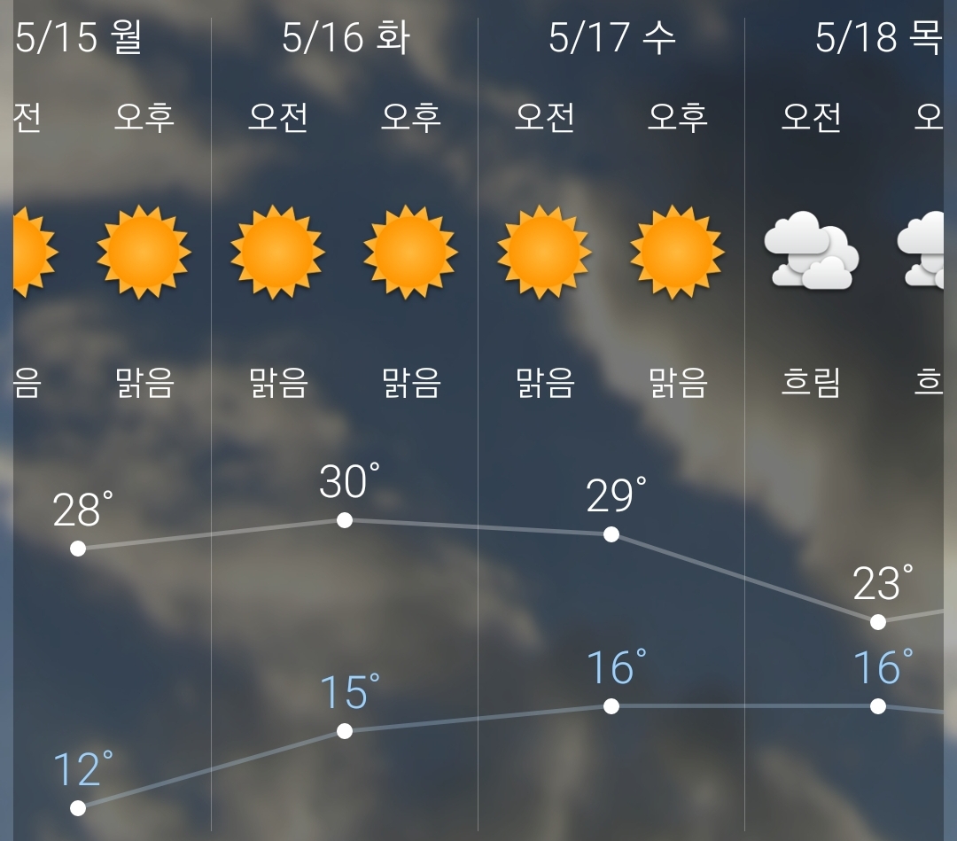 2023.5.15.월.~5.24.수. 서울·대전 일기예보: 맑음 본문