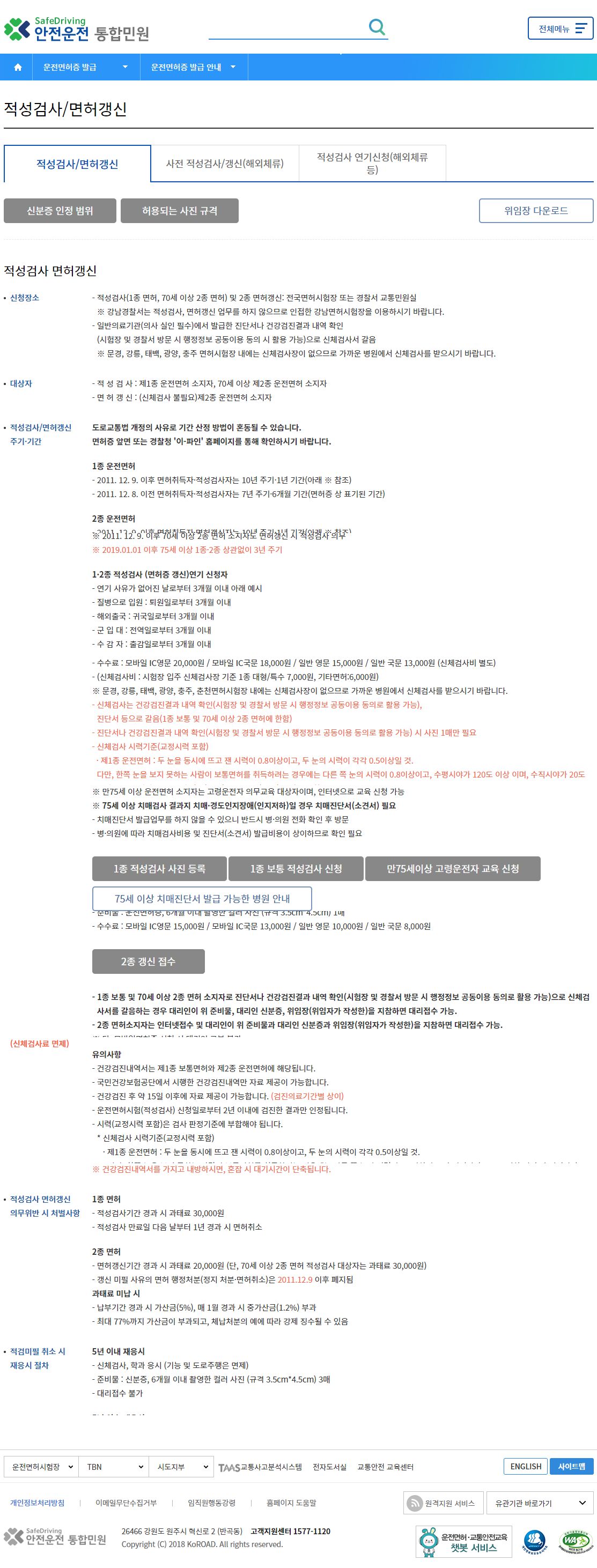 - 적 성 검 사 : 제1종 운전면허 소지자, 70세 이상 제2종 운전면허 소지자