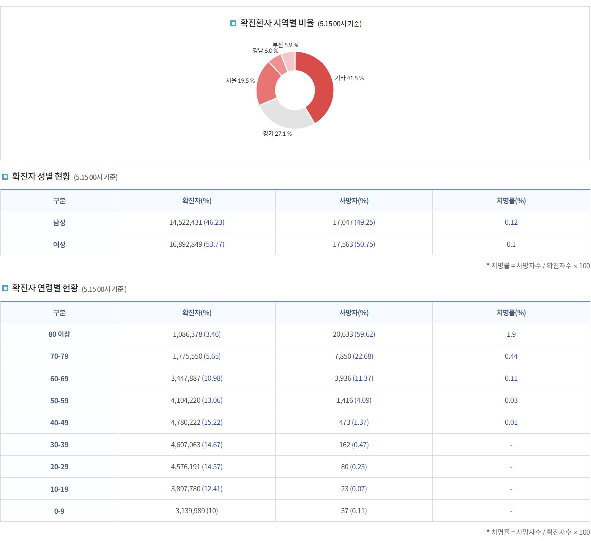 | 코로나19집계(2023.5.13. 0시기준): 확진 +1.9만, 사망 +6명, 중환자실가동률 44% (0) | 2023.05.13 |