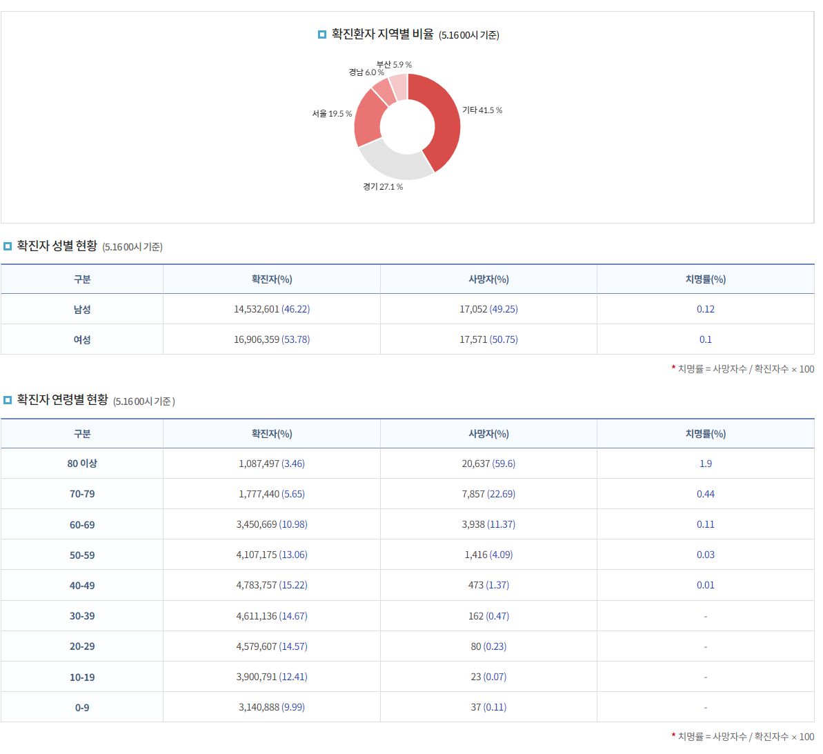 코로나19집계(2023.5.13. 0시기준): 확진 +1.9만, 사망 +6명, 중환자실가동률 44% (0) | 2023.05.13 |