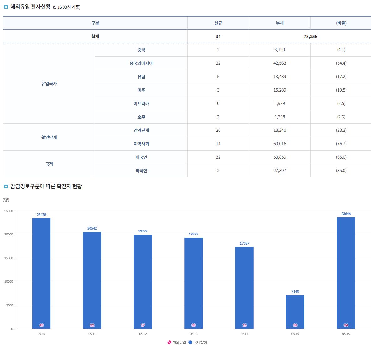 코로나19집계(2023.5.16. 0시기준) 확진 +2.4만, 사망 +13명, 중환자병상가동률 42% 본문