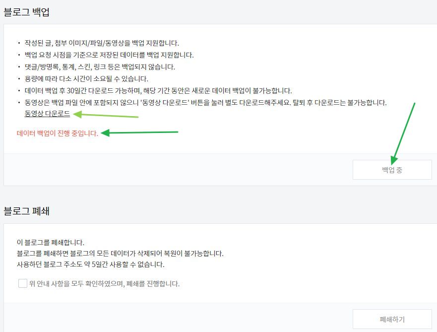 댓글/방명록, 통계, 스킨, 링크 등은 백업되지 않습니다.