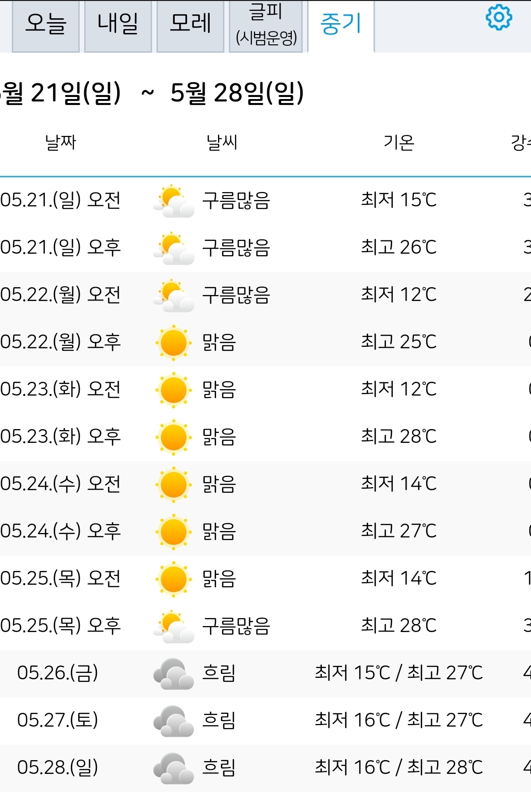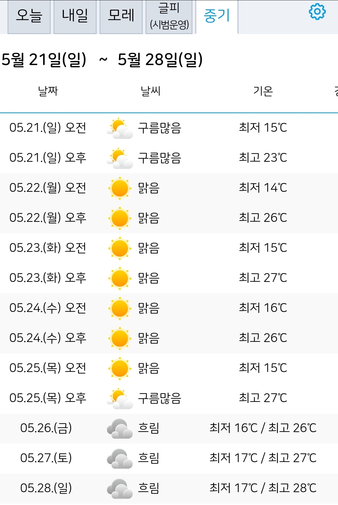 | 2023.5.15.월.~5.24.수. 서울·대전 일기예보: 맑음 (0) | 2023.05.14 |