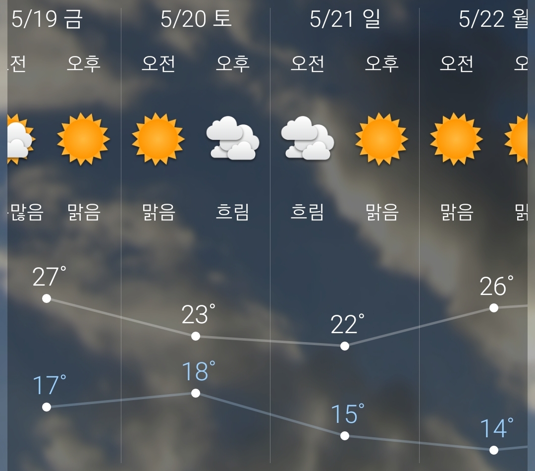 오늘 오전에 살짝 비. 2023.5.19.금. ~5.28.일까지 서울·대전 날씨 본문