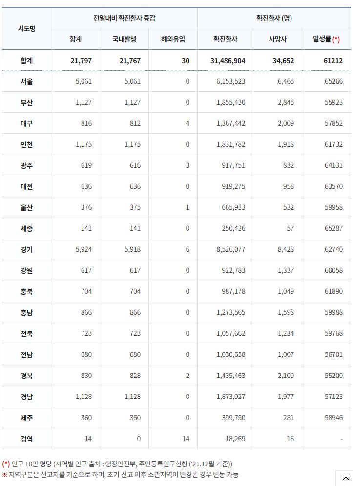 출처는 질병관리청입니다. 일일집계는 이달 말까지만 게시하는 듯.