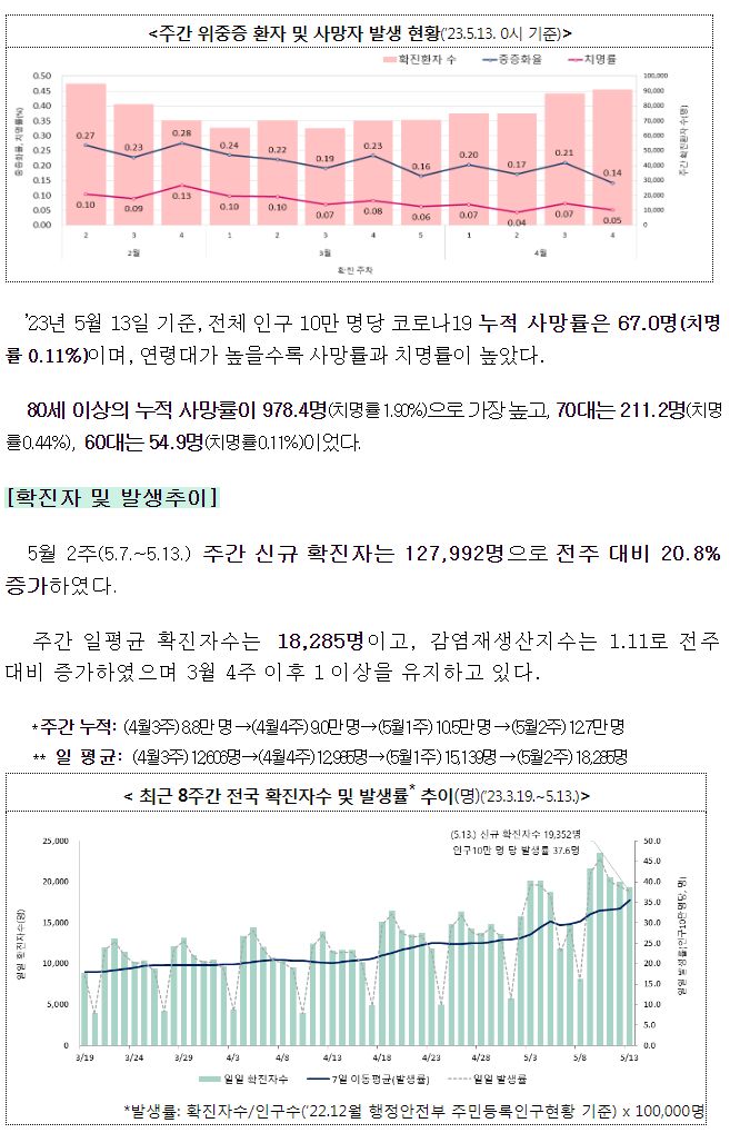 코로나19(2023.5.17) 주간 확진자 전주 대비 20.8% 증가(5.17.수) 본문