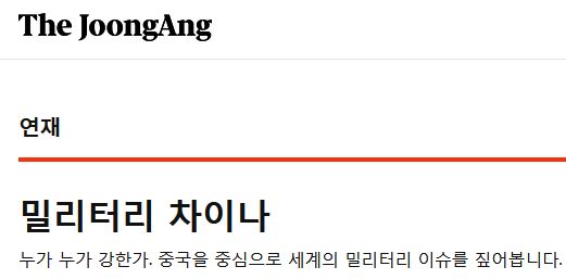 주요 신문마다 군사전문기자가 있고, 그 기자들이 자기 연재섹션이나 기사모음코너 URL을 매체에 가지고 있는데, 그런 것 중 하나입니다.