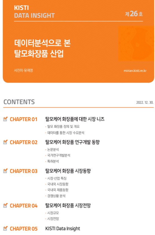 보고서 원문. 2022.12.30 KISTI DATA INSIGHT 제26호 : 데이터분석으로 본 탈모화장품 산업