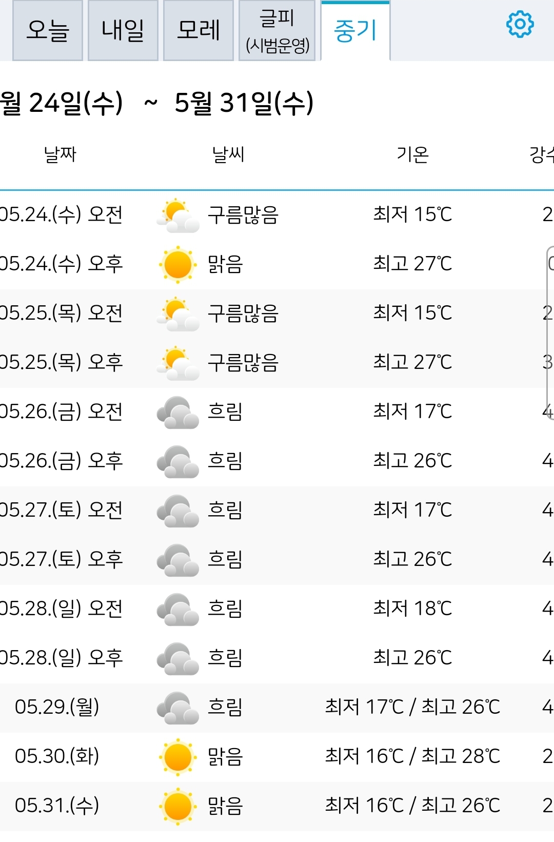 낮기온 25~30도 사이면서