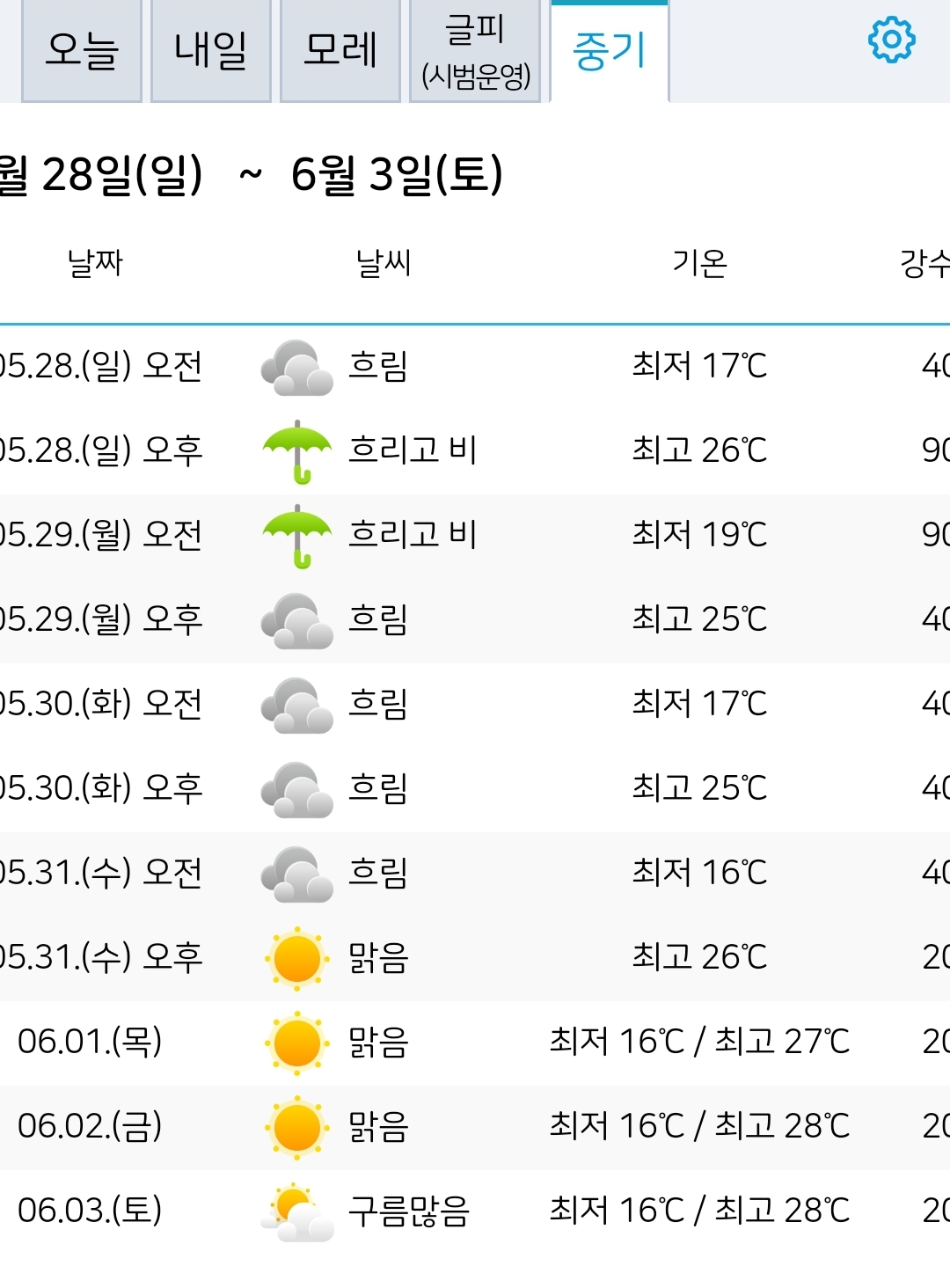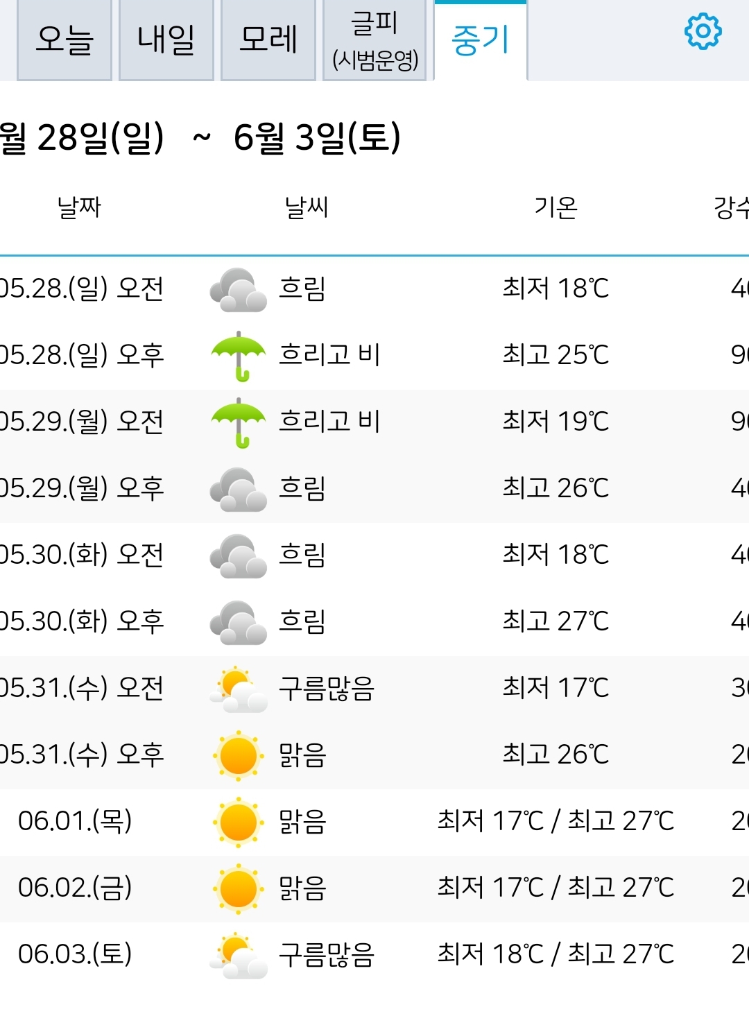 2023.5.25.목.~6.3.토. 서울·대전날씨 본문