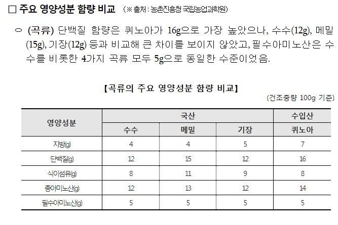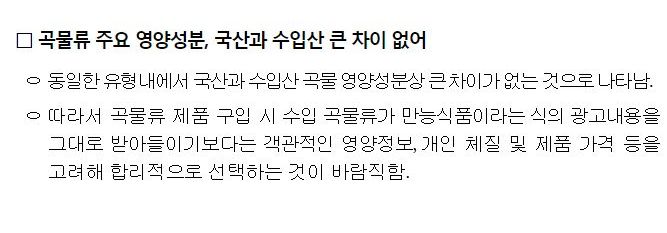 이 자료는 3월 9일(목) 조간부터 사용하시기 바랍니다.[방송·인터넷 매체는 3월 8일(수) 12시] 아마씨드 과다섭취 주의 필요 - 곡물류 주요 영양성분, 국산과 수입산 큰 차이 없어 - 최근 수입 곡물(