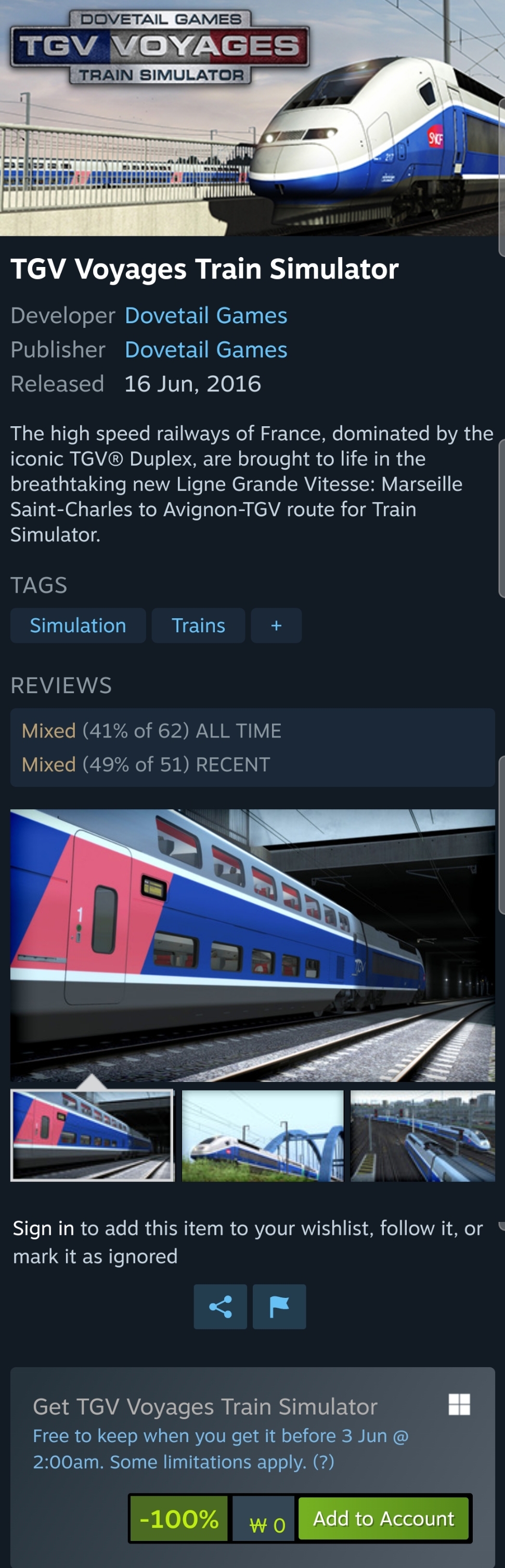 Save 100% on TGV Voyages Train Simulator on Steam