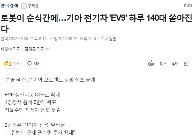 로봇이 순식간에…기아 전기차 'EV9' 하루 140대 쏟아진다