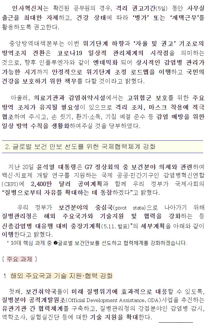 담당 :중앙방역대책본부 위기소통팀 작성일 :2023-05-31 10:55