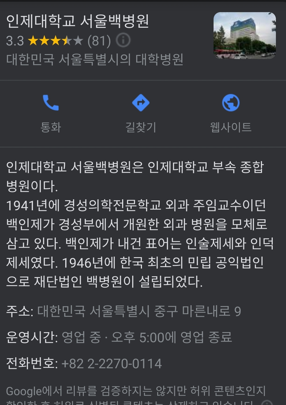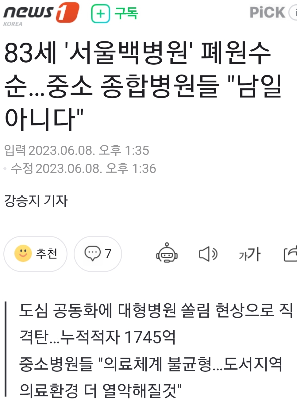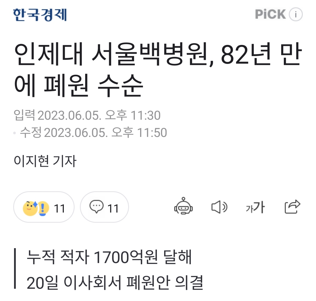 서울백병원이 폐원할 것 같다는 뉴스 본문