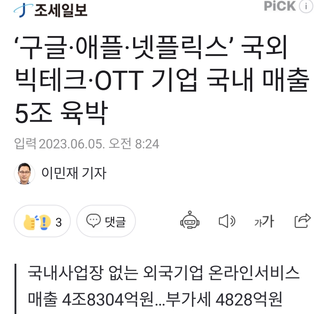 ㅡ 국외사업자의 국내 법인세 회피 (......) 넷플릭스는 4년간 25억 달러를 국내에 투자하겠다 운운했는데, 그렇다먼 그 이상의 수익을 기대할 것이다. 하디만 지금도 국내 수익의 상당 부분을 해외로 이전하여 법인세 탈세의혹. (.....) 결산․감사보고서 상 넷플릭스의 지난해 국내 매출은 7733억원인데 비해 법인세 납부액은 33억원에 불과 (......) 국세청은 2021년 넷플릭스를 상대로 세무조사를 통해 800억원의 세금을 추징 (......) 넷플릭스는 이에 불복해 소송 중.
